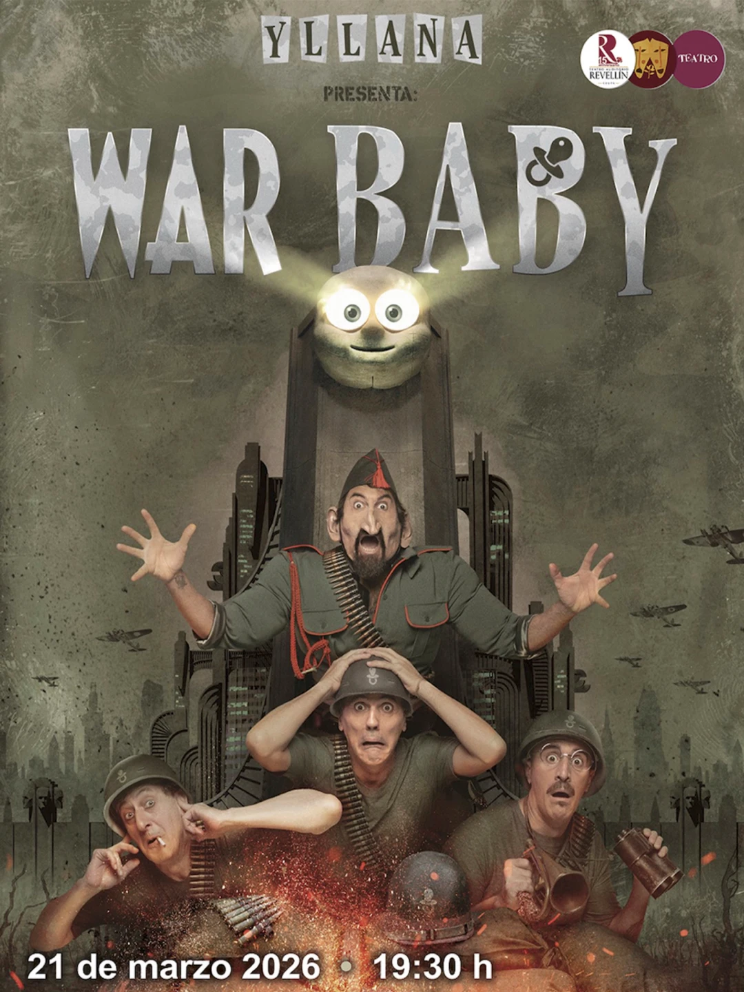 Llega al Revellín WAR BABY, la genial sátira antibelicista de la compañía Yllana que nos traslada a un alocado centro de reclutamiento militar. Entre gags visuales y situaciones disparatadas, verás cómo unos reclutas muy despistados son entrenados para una guerra absurda originada por el nuevo líder del país: un bebé consentido y belicoso. Es un espectáculo lleno de humor gestual y locura cómica que sabe utilizar la risa como arma frente al sinsentido del poder. ¡Una oportunidad única para disfrutar del sello inconfundible de Yllana!